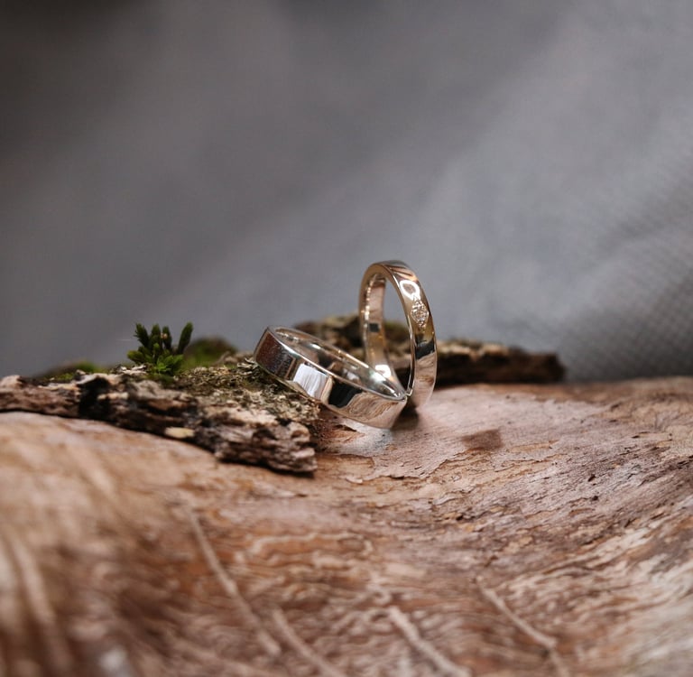 Les alliances ont une symbolique forte et si importante que c’est de loin mes projets préférés… Elles représentent un cercle sans fin, signifiant votre amour infini. Portées au doigt, elles sont un rappel quotidien des vœux échangés et du lien profond entre vous. Plus qu’un simple bijou, les alliances sont le témoignage visible d’une promesse d’amour. Je travaille en étroite collaboration avec mes clients pour concevoir des bijoux uniques, avec leur histoire. Grâce à un savoir-faire artisanal, je transforme la matière première en alliances uniques qui vous suivront toute votre vie ( C’est ce que je vous souhaite ! ;) ) Il est également possible de refondre d’anciens bijoux ( sous réserve qu’ils sont en Or 750/1000ème ) afin de rajouter une symbolique supplémentaire en les intégrants à vos alliances. Hâte d’échanger avec vous et de créer ensemble, des alliances qui vous ressemble.