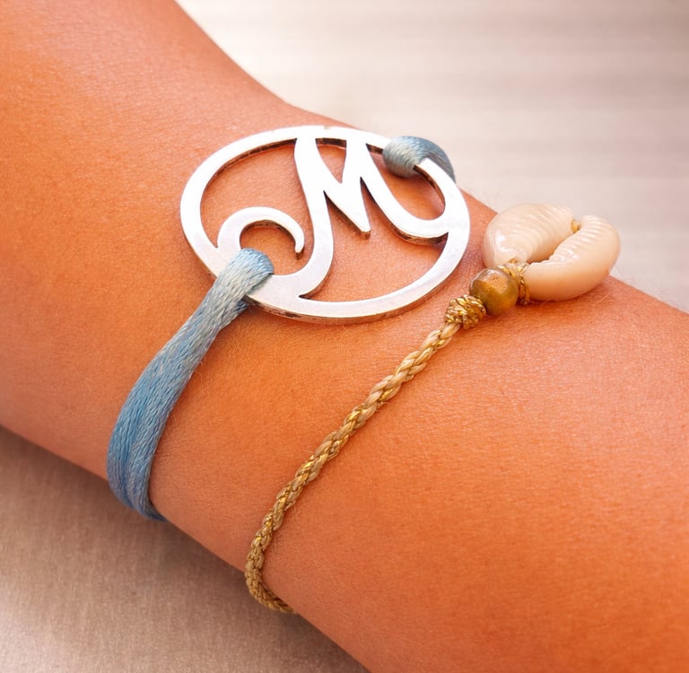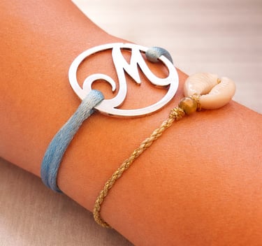Choisissez la "lettre" de votre choix, puis optez pour un modèle petit ou grand, à porter en bracelet, sur cordon de satin ou en version jonc, ou choisissez un modèle à porter en pendentif.
